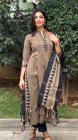Kurti comes with a patch border neckline and  elbow length border sleeve and pockets with nizam borders