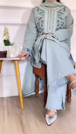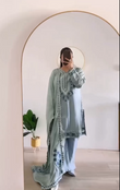 Powder Blue Embroidered Straight Suit with Pants and Embroidered Dupatta