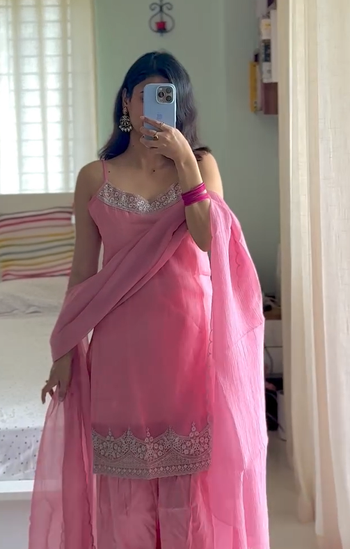 TOP Fabric - Chinon silk , bottam fabric- silk, dupatta fabric - Chinon Silk , With Heavy Embroidery Work