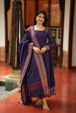 Multi color border design woven reference handloom Anarkali kurti with a striking temple big border and attached cotton lining