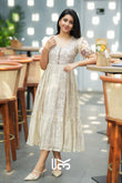 Channel timeless charm with our Earthy Bloom Midi Dress, an elegant blend of rustic tones and delicate detailing. Made from airy Kota Doria, layered over a soft cotton printed base, this dress brings you the best of breathable comfort and effortless style. The warm brown shade is beautifully complemented with Potli detailing on the yoke, giving it a graceful, handcrafted appeal.